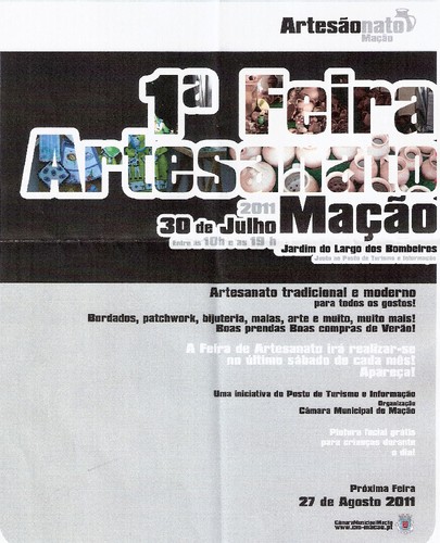 dar mais vida ao concelho. Coincidência ou não, para o facto não tem importância. O que importa, é que hoje dia 30 de Julho, está a ocorrer a 1ª Feira de Artesanato na vila de Mação, no largo dos Bombeiros, como pode ser comprovado, no vídeo que publicamos. Fizemos o trabalho, numa altura, em que se acabavam de montar as bancas de exposição.Com a visita à Feira, é uma boa oportunidade, para passar um sábado em família, de uma forma diferente. Assim contribuiremos, para dar