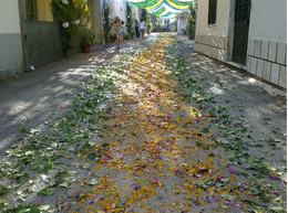 trabalho das pessoas do Pereiro, tanto as aí residentes como as que moram noutras terras, na ornamentação das ruas por onde passa a procissão. Com efeito é o resultado de um trabalho