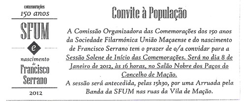 As comemorações têm o seu início no próximo Domingo, 8 de Janeiro pelas 16 horas, no Salão Nobre dos Paços do Concelho de Mação, conforme vem indicado no convite que também publicamos.