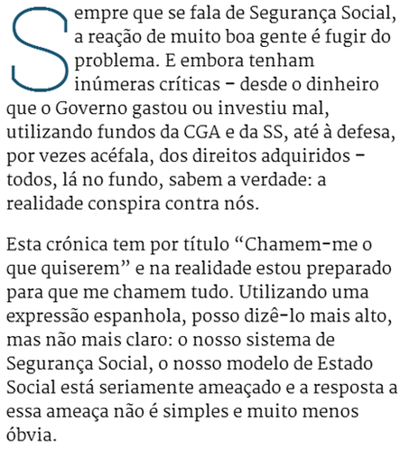 Relativamente ao tema Segurança Social, publicamos seguidamente um trabalho, da autoria de Henrique Monteiro, publicado recentemente no Expresso Digital: